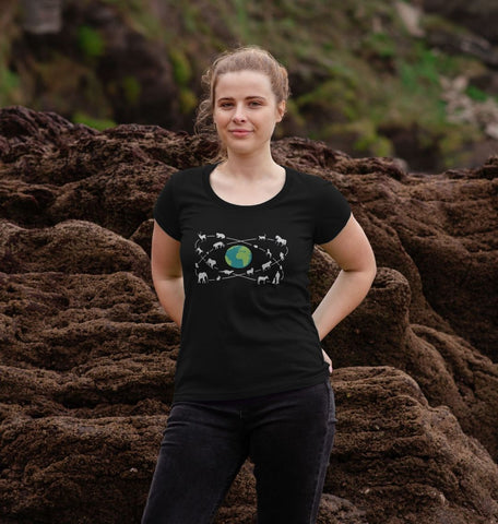 Black Organic Ladies Animals Around the World T-shirt